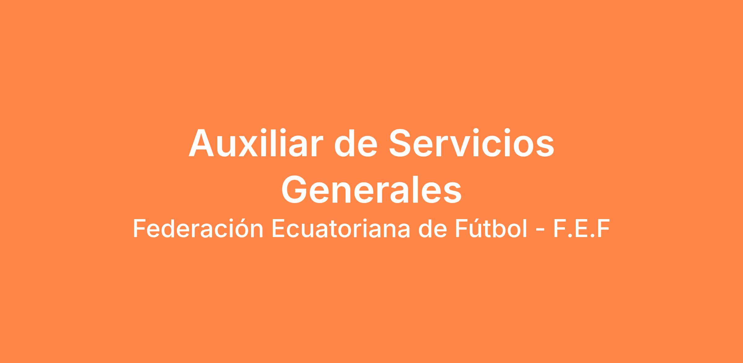 Federación Ecuatoriana de Fútbol - F.E.F está en búsqueda de un Auxiliar de Servicios Generales para integrarse al equipo y apoyar en el mantenimiento y correcto funcionamiento de sus instalaciones.